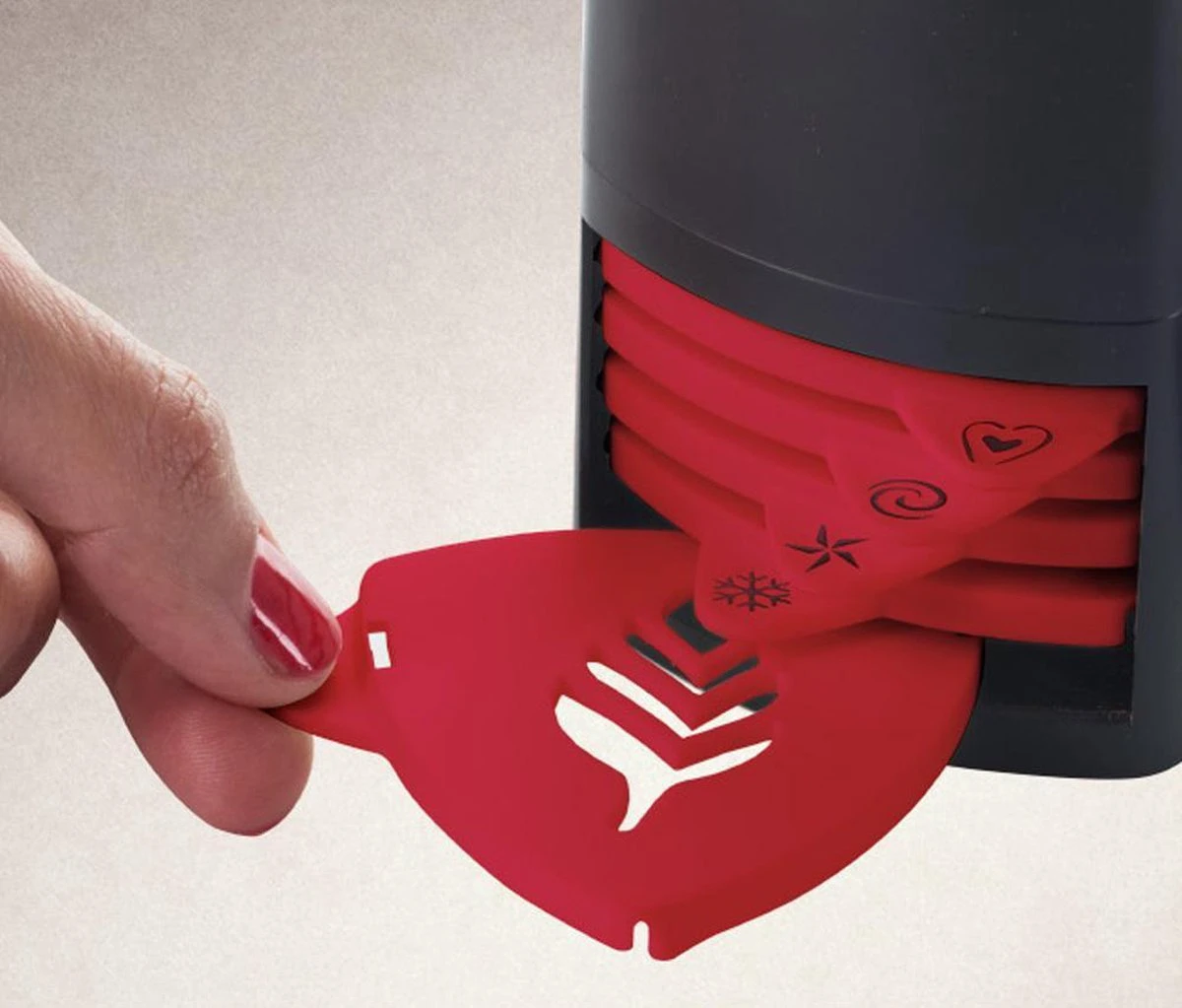 Met de cacaostrooier Cappuccino Artist van Aerolatte maak je letterlijk in een handomdraai de mooiste creaties. Jouw inner barista komt met deze cacaostrooier naar boven. Vul de Cappuccino Artist met cacao, kies een vorm uit de 6 professionele patronen, draai en strooi de cacao op je cappuccino. Het lukt altijd