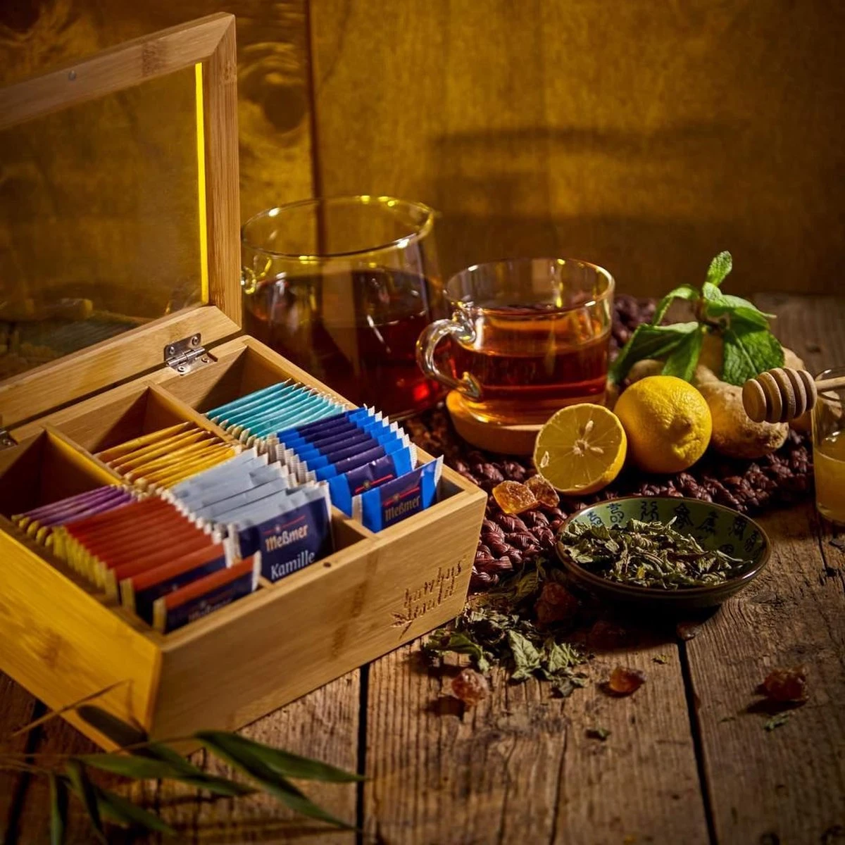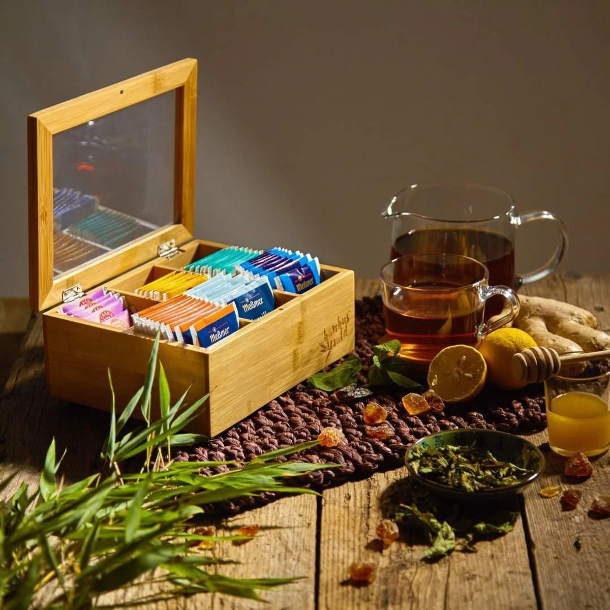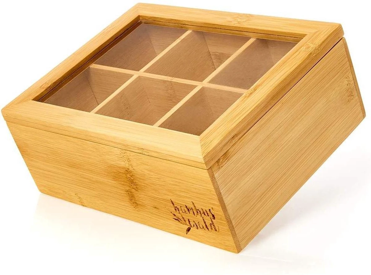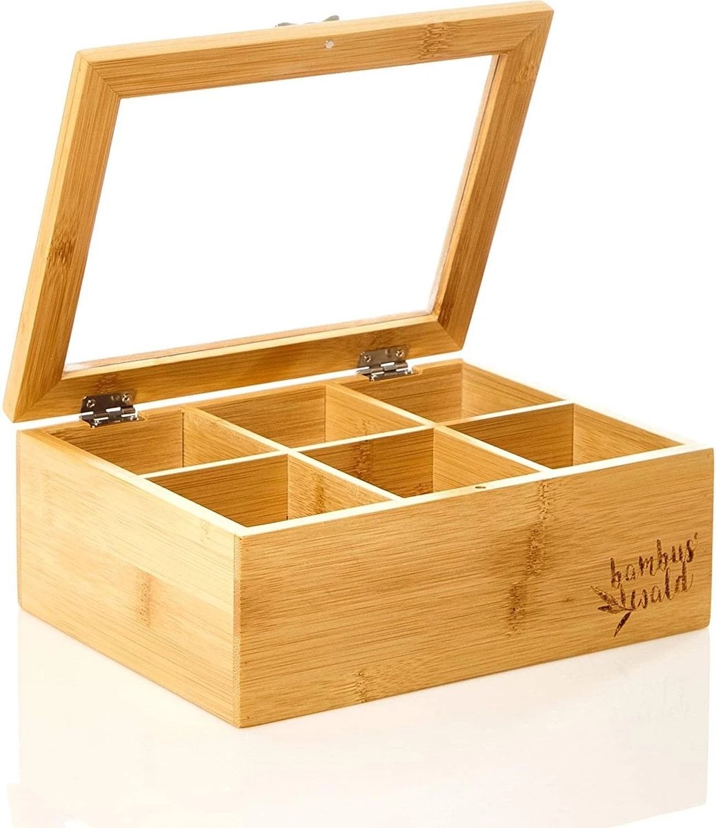 Elk compartiment heeft een afmeting van 6,5 x 6,5 x 8,5 cm voor 10 tot 15 theezakjes. U kunt de thee box op het werk, op het ontbijtbuffet of dressoir in het restaurant of thuis gebruiken. De doos is ideaal voor High Tea en afternoon tea in het weekend. Dankzij de strak zittende deksel heeft u geen verlies van aroma. Met het venster deksel heb je altijd een overzicht van de huidige voorraad.