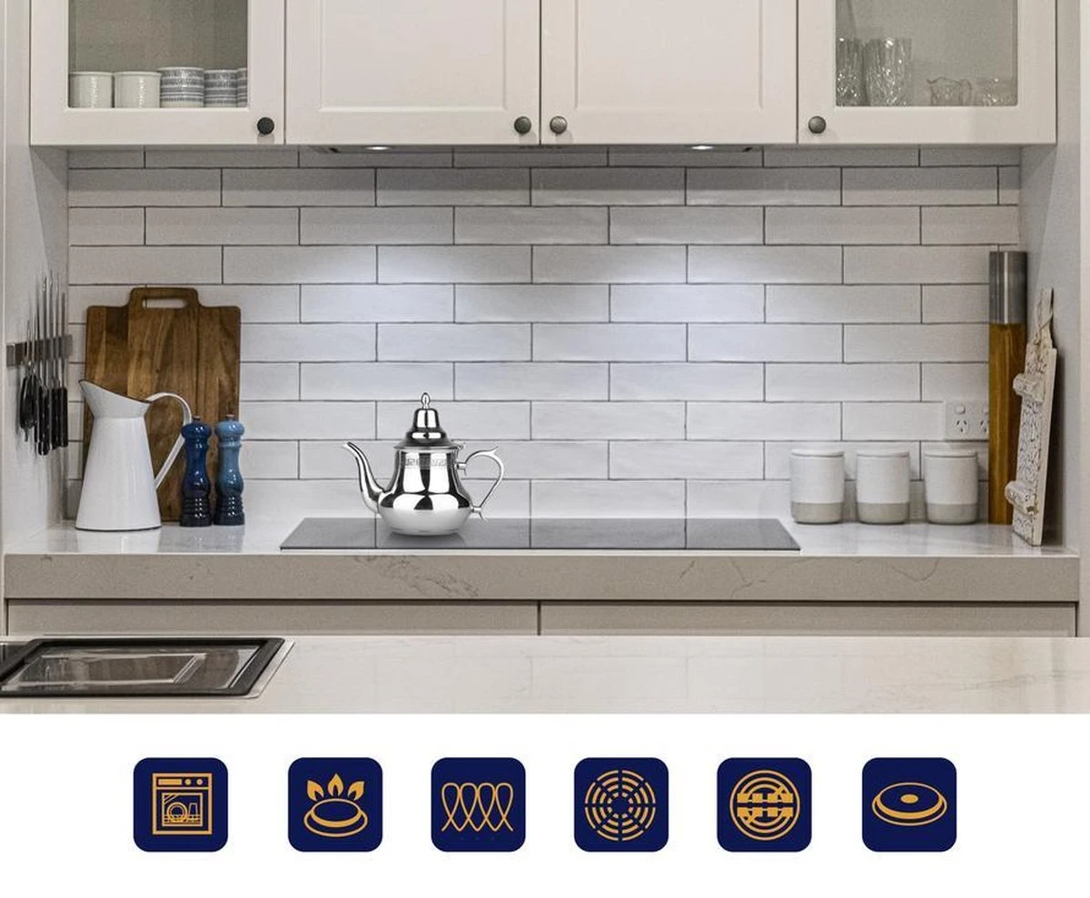 - Geschikt voor alle warmtebronnen, inclusief inductie.