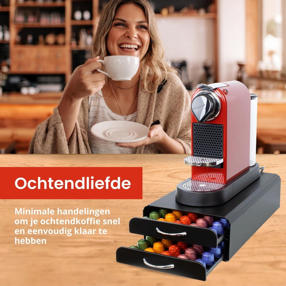 - Een vaste plek voor al je koffiecups