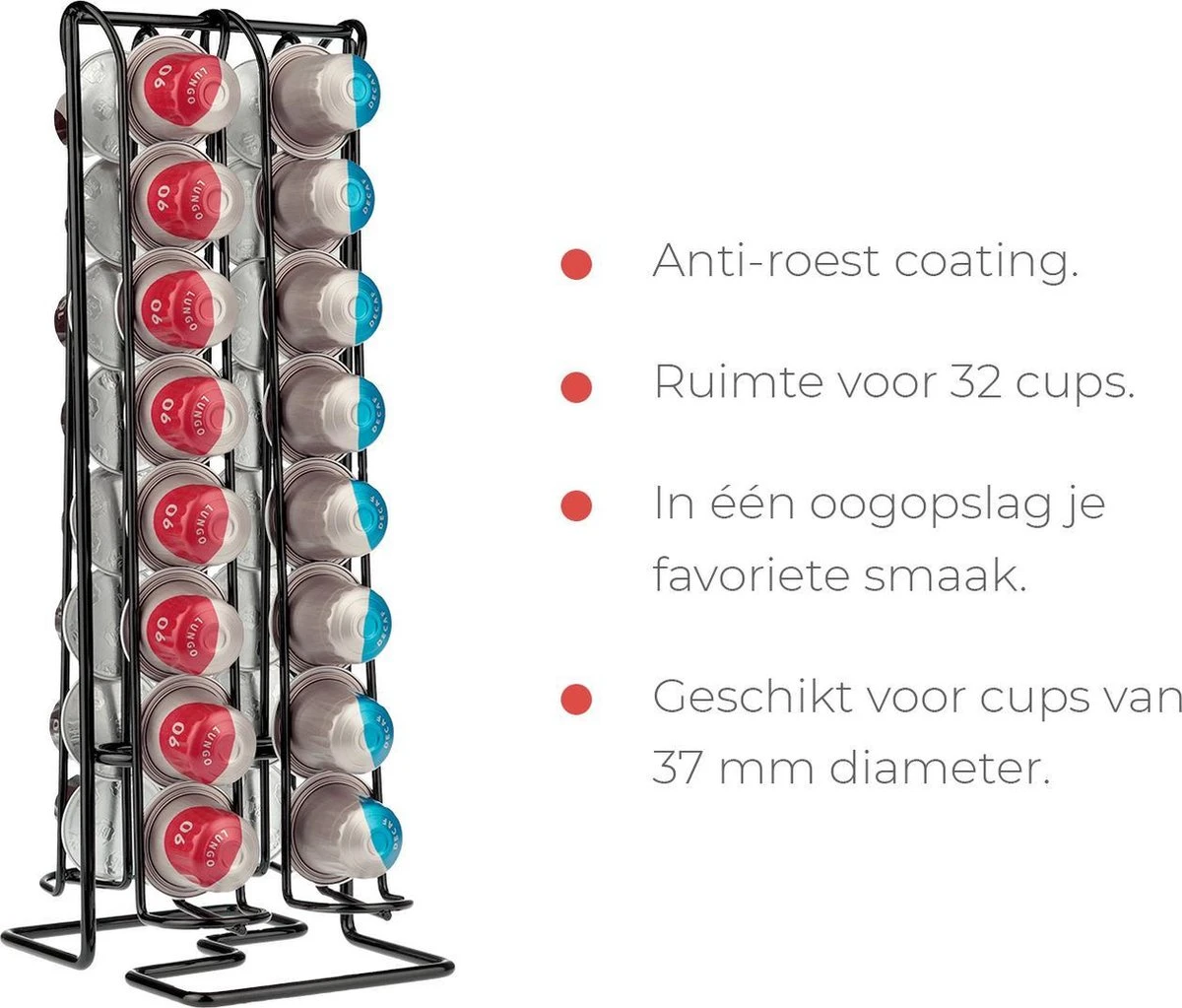 De Homeon Capsulehouder voor Nespresso cups heeft ruimte voor 32 capsules.