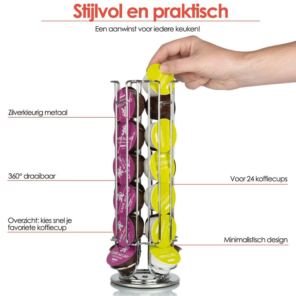 Met de capsulehouder van KitchenBrothers berg je al je Dolce Gusto koffie capsules gemakkelijk en georganiseerd op. Dankzij de 360 graden draaifunctie heb je snel toegang tot favoriete koffiesmaken. Leuk ook je keuken op met deze stijlvolle capsulehouder! De capsulehouder is geschikt voor 24 capsules.