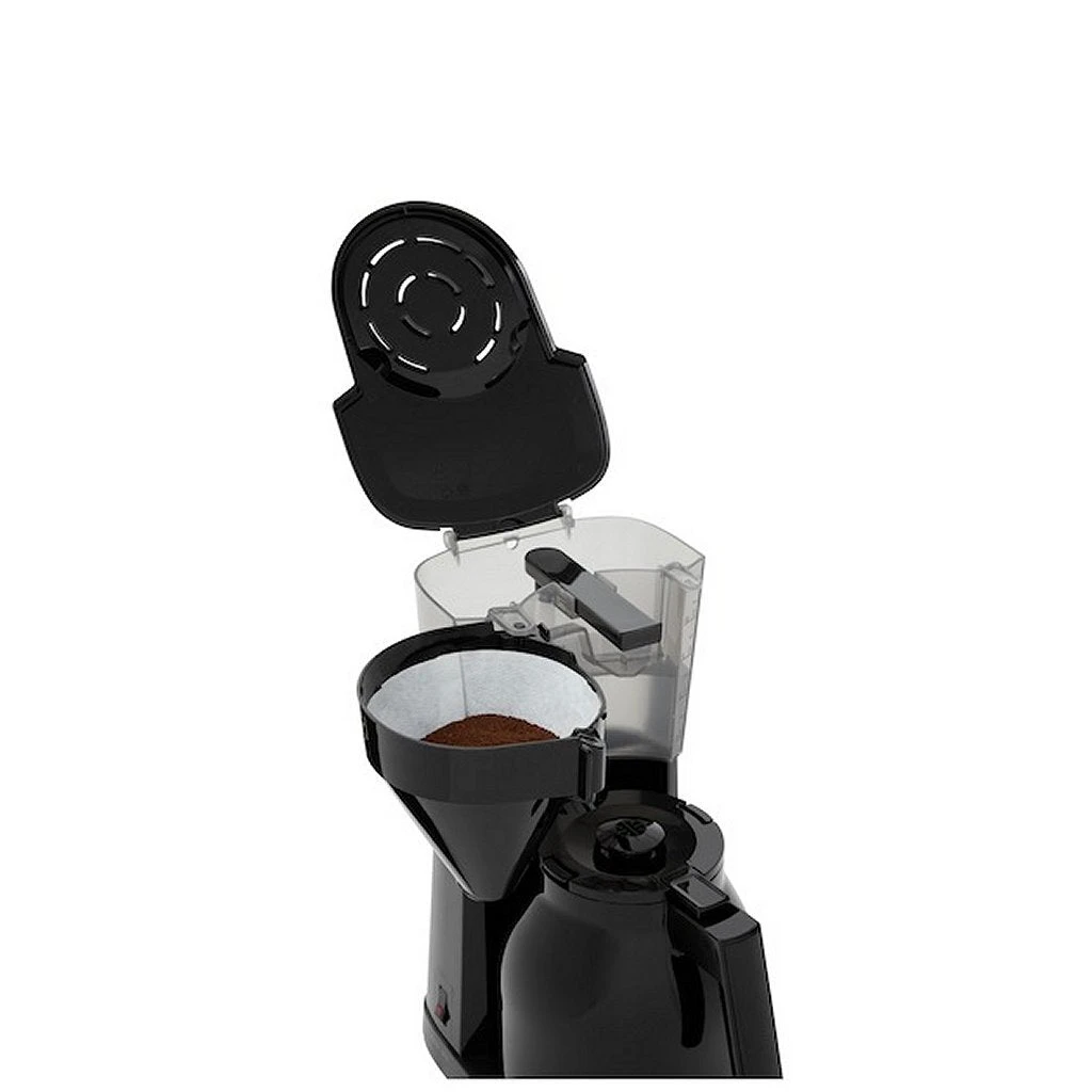 Dankzij de uitneembare zwenkfilter kunnen gebruikte koffiefilters eenvoudig worden verwijderd. De filterhouder is bovendien vaatwasbestendig. De geïntegreerde druppelstop voorkomt dat er koffie uit de filter lekt.