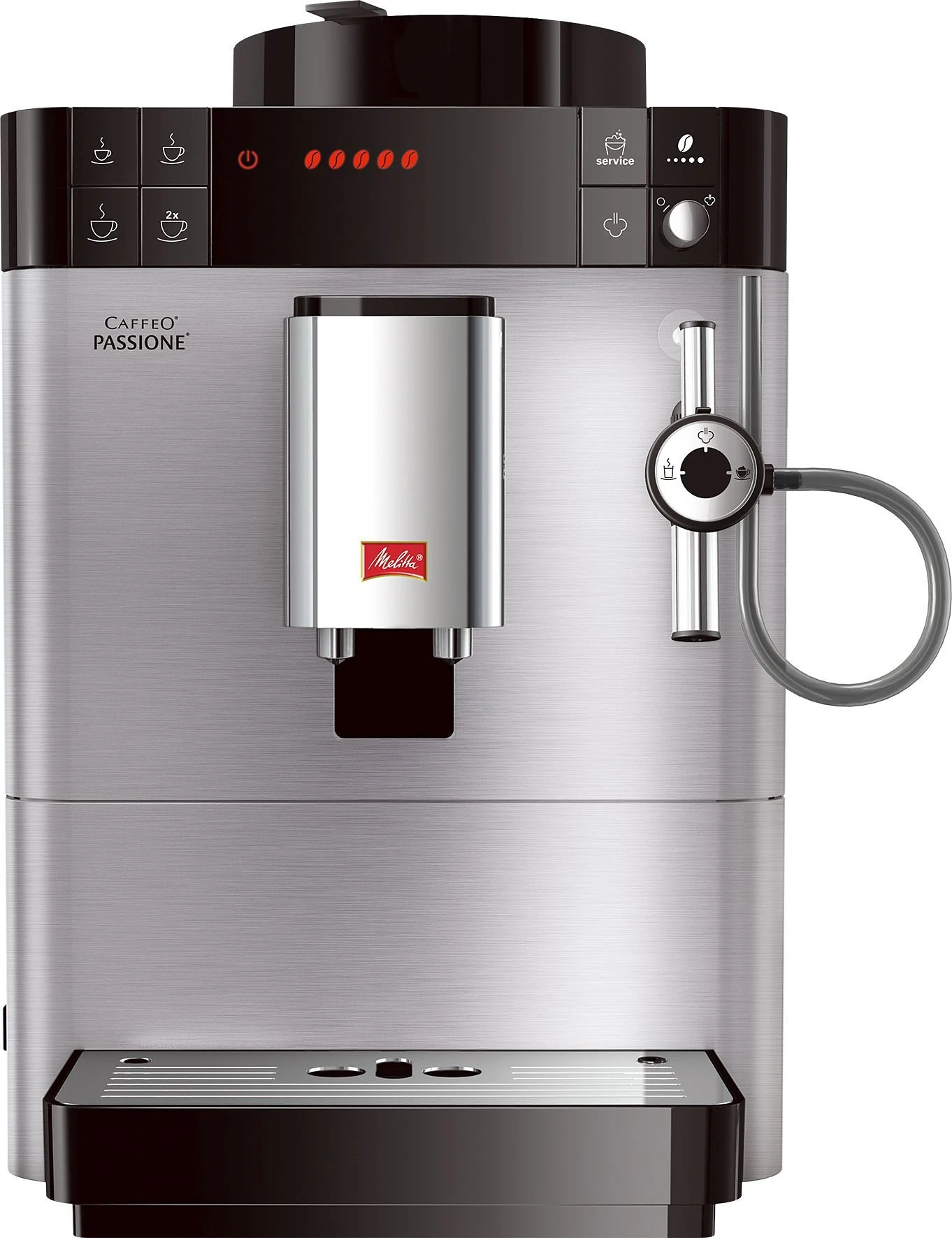 Volautomatisch koffiezetapparaat Caffeo® Passione® van MELITTA®. Het ruimtebesparende, volautomatische koffiezetapparaat dat voldoet aan de allerhoogste eisen. Het Auto Cappuccinatore-systeem voor het snel en perfect bereiden van melkschuim, een in hoogte verstelbare koffietuit en nog veel meer extra’s maken de Caffeo® Passione® tot een compact, allround-volautomatisch koffiezetapparaat. <br><br><b>Speciale eigenschappen: </b><br><ul> <li>Genieten van elke keer een vers kopje koffie: elk kopje koffie altijd vers gezet, dat is dankzij het Melitta® Best Aroma System nu op elk moment mogelijk: het benodigde aantal koffiebonen wordt altijd versgemalen en direct en zonder omwegen in de koffiezet-unit verwerkt. De Aromasafe®-afsluiting van het bonenreservoir beschermt de koffiebonen optimaal en behoudt zo de vele aroma's.</li></ul><b>Overige specificaties: </b><br><ul> <li>Compacte constructie en modern design. Het kubusvormige model ziet er niet alleen mooi uit, hij is zo ruimtebesparend dat je hem overal neer kunt zetten. Het strakke frontdesign zet zich consequent voort.</li><li>Het intuïtieve bedieningspaneel met geïntegreerd symbooldisplay is beperkt tot de essentie en zorgt voor een heel eenvoudige bediening. Door de betreffende toets iets langer in te drukken, kan de gewenste koffiehoeveelheid opgeslagen worden.</li><li>De praktische Auto Cappuccinatore is een garantie voor perfect melkschuim. Toch hij kan nog meer: naar wens kan hij ook melk of water verwarmen, bijvoorbeeld voor lekkere chocomelk of een kopje thee.</li></ul><b>Kenmerken & functies: </b><br><ul> <li>Gelijktijdige bereiding van 2 kopjes: ja</li><li>Kopjesplateau: praktisch kopjesplateau voor het voorverwarmen van kopjes (passief)</li><li>Reservoir voor tweede, voorgemalen koffiesoort: nee</li><li>Timer & tijdsaanduiding: nee</li><li>In hoogte verstelbaar lekbakje: nee</li><li>In hoogte verstelbare koffietuit: ja (tot 135 mm)</li><li>Uitneembare koffiezet-unit: ja</li><li>Automatische spoel- en reinigingsprogramma's: ja</li><li>Ontkalking: automatisch</li><li>Maalwerk: stalen kegelmaalwerk</li><li>Maalgrofheid instelbaar: in 5 standen instelbaar</li><li>Instelbare hoeveelheid per kopje: 25-220 ml</li><li>Heetwater-/stoomtuit: ja</li><li>Direct-stoomfunctie (2 doorloopverwarmers): nee</li><li>Melkopschuimer: Auto Cappuccinatore</li><li>Melkreservoir: nee</li><li>Programmafuncties: ja</li><li>Display: symbooldisplay met rode LED's</li><li>Kopjesverlichting: nee</li><li>Energiebesparende stand: ja</li><li>Automatische uitschakeling: ja</li></ul><b>Extra functies: </b><br><ul> <li>koffiezettemperatuur programmeerbaar (87 °C/90 °C/93 °C), sterkte van de koffie in 5 standen programmeerbaar, stalen kegelmaalwerk: vijfvoudig instelbaar, automatisch bepalen van de maalhoeveelheid, seperate heetwaterbereiding mogelijk, afneembaar waterreservoir met waterstandbeveiliging, passief verwarmd kopjesplateau</li></ul><b>Accessoires: </b><br><ul> <li>Welcome set bestaand uit: reinigingsstaafje, melksysteem-schoonmaakmiddel, vloeibare ontkalker, Claris-waterfilter</li></ul><b>Technische gegevens: </b><br><ul> <li>Inhoud bonenreservoir (g): 125</li><li>Capaciteit waterreservoir (liter): 1,2</li><li>Capaciteit van de koffiedikhouder: 6-8 porties</li><li>Pompdruk (bar): 15</li><li>Aansluiting (W/V/frequentie): 1450 W/ 220-240 V/ 50-60 Hz</li><li>Afm. apparaat hxbxd (cm): 39 x 25,3x 38</li><li>Gewicht (kg): 8</li><li>Kleur: edelstaal</li></ul>