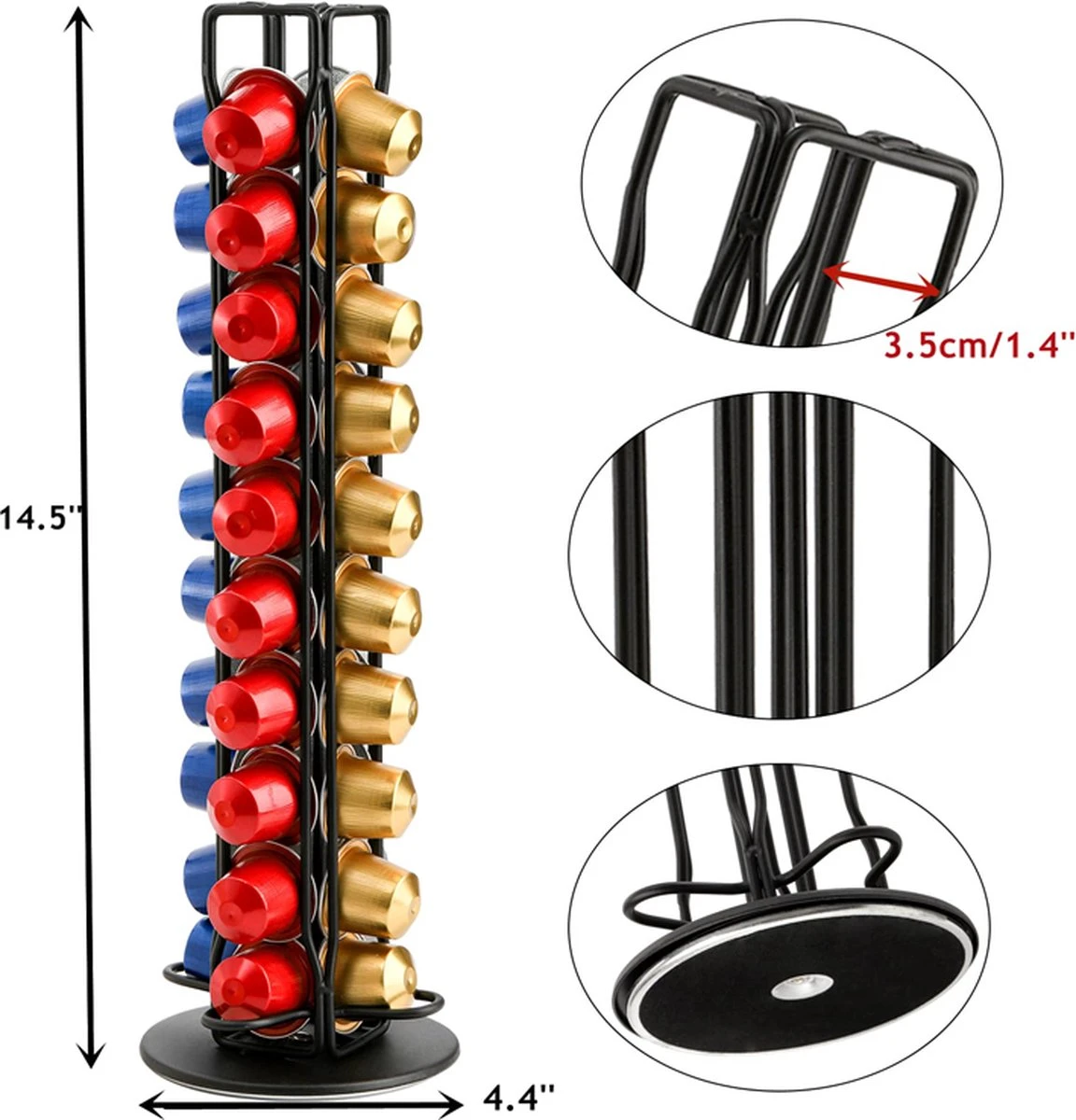 Je kent het wel, elke keer die koffiedoosjes in je keuken en dan ineens is je koffie op. Wij hebben daar dé oplossing voor. De Neyo Goods capsulehouder staat elegant in je keuken, heeft ruimte voor 40 Nespresso capsules, zo ruim je je koffiecups gemakkelijk en georganiseerd op. Door de 360 graden draaifunctie heb je met een draai toegang tot alle zijden van de koffiecuphouder en je ziet in een oogopslag hoeveel koffie je nog hebt.