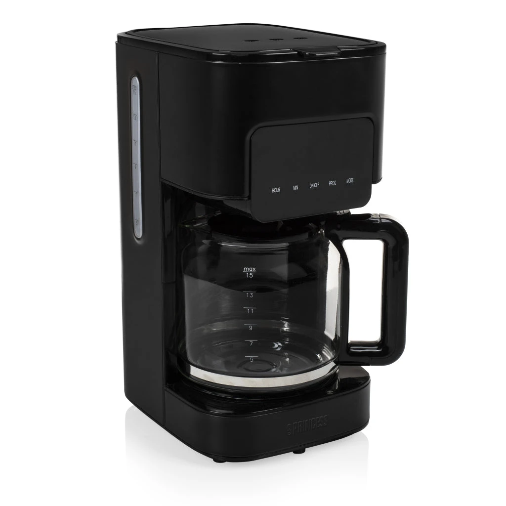Filterkoffie is het lekkerst als hij vers is en het water de tijd heeft gekregen om alle aroma’s uit de koffiebonen op te nemen. Met de digitale 24-uurs timer stel je eenvoudig de tijd in dat jij wilt dat het koffiezetapparaat start. Doe bonenmaling in het uitneembare koffiefilter en vul het waterreservoir met de juiste hoeveelheid water. Verse koffie in de ochtend, rond het middaguur en na het eten. Het kan allemaal met het Princess Deluxe Koffiezetapparaat.