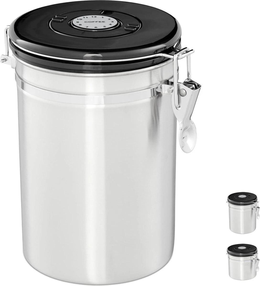 Relaxdays Voorraadbus Koffie – Koffieblik – Luchtdicht – Koffiebus – Zilver – Metaal Groot