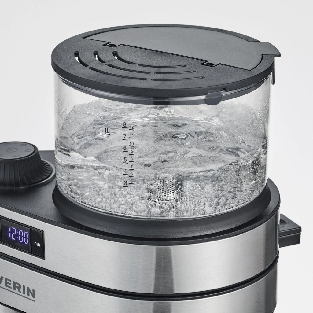 - Hoogwaardig en aantrekkelijk volledig roestvrijstalen ontwerp met transparant glazen watertank maakt het brouwproces een ervaring