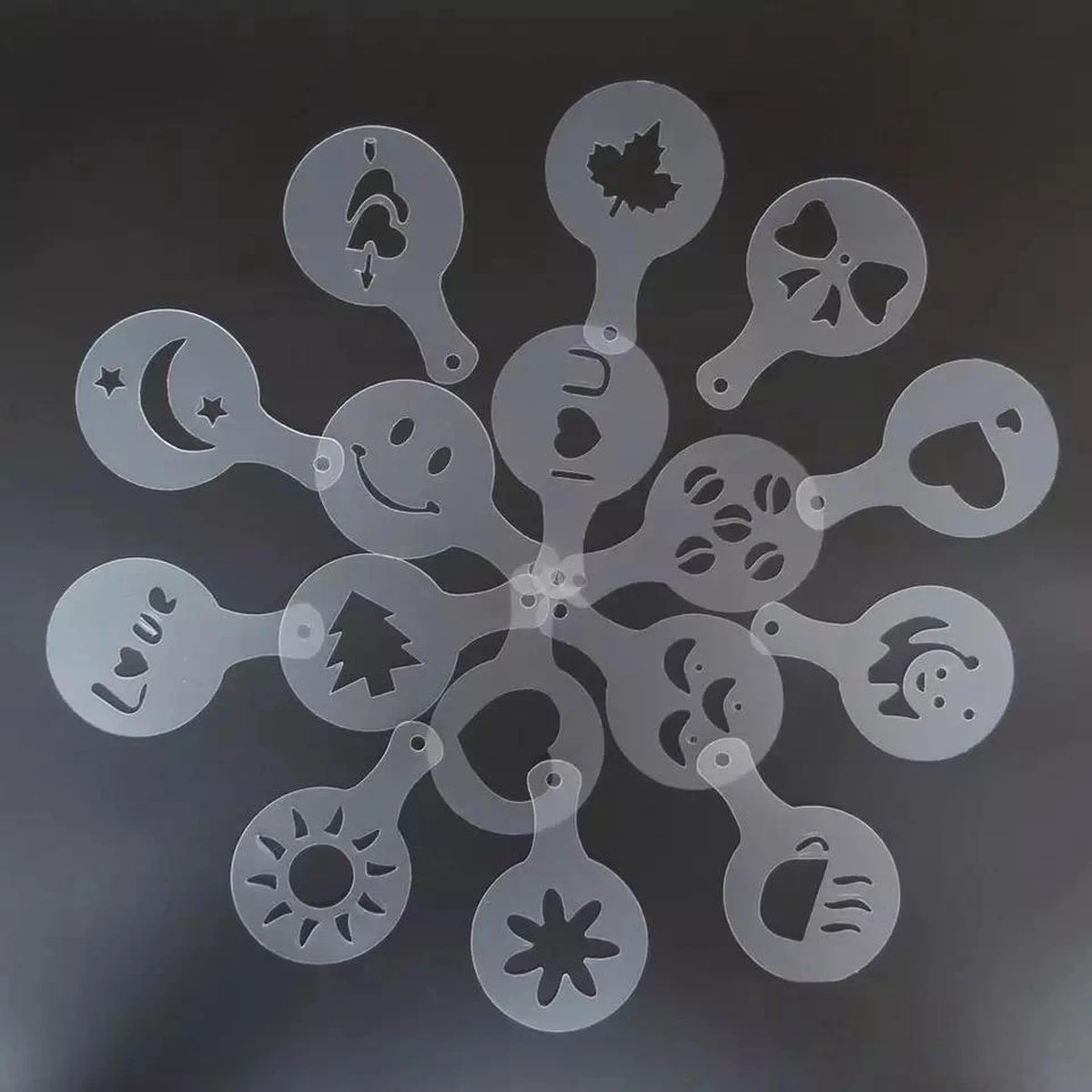 Deze complete latte art set met RVS cacaostrooier en een 16-delige koffiesjablonen set. Leuk om je cappucino, latte macchiato of caffè latte te versieren door cacao op de cacaostrooier te doen en vervolgens met de sjablonen set over het geschuimde melk strooien. Je kan de sjablonen ook gebruiken om bijvoorbeeld chocolademelk, koekjes, taart en cupcakes te versieren.