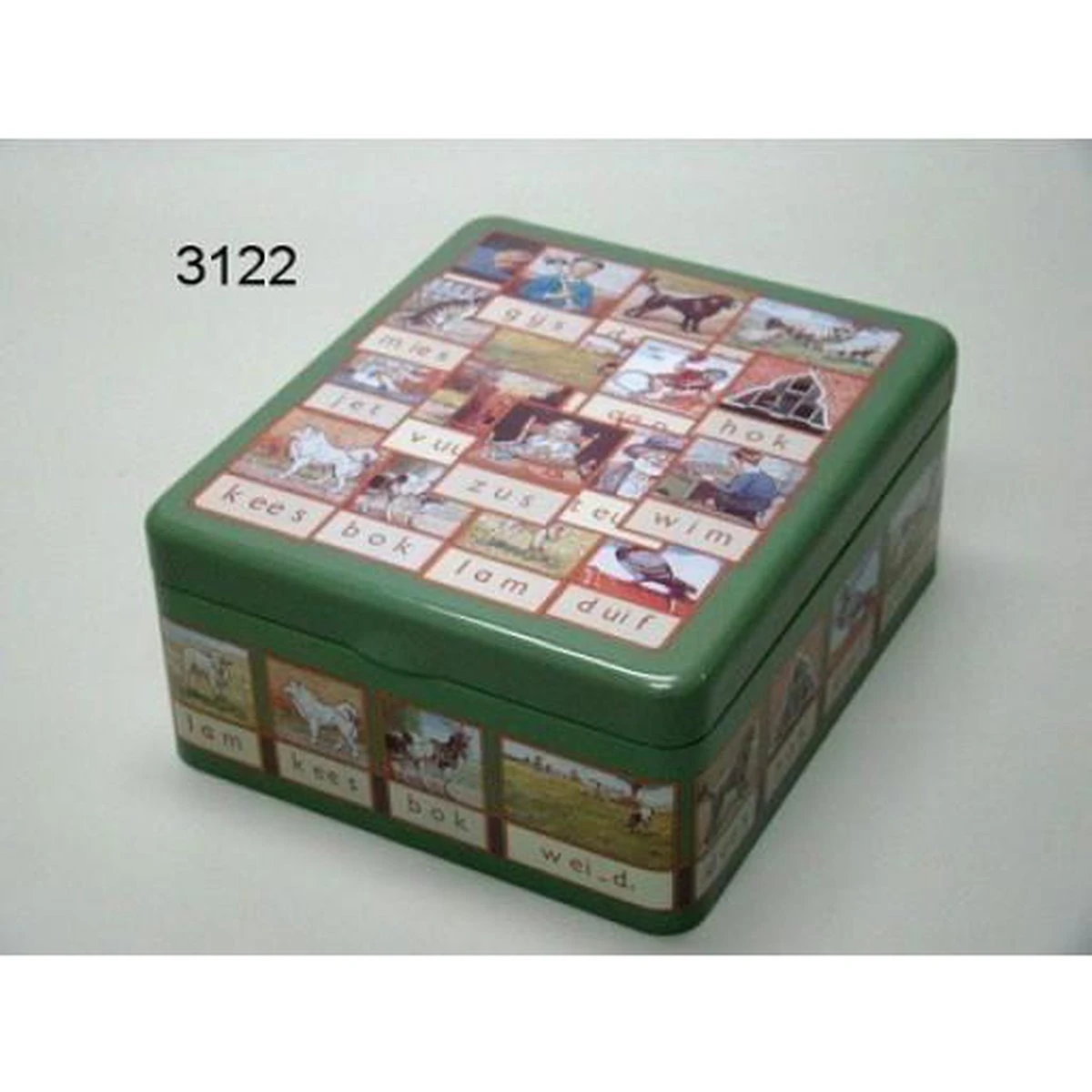 Theeblik voor het bewaren van theezakjes. Heerlijk nostalgisch met de opdrukken van Aap, Noot en Mies.